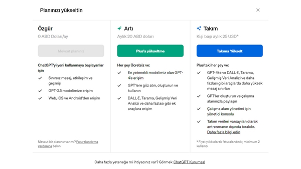 Milyonlarca insan tarafından kullanılan ve belki de en popüler yapay zeka uygulaması olan ChatGPT, sohbet etmekten kodlamaya her işi kolaylaştırıyor. OpenAI tarafından kullanıma sunulan ChatGPT iki versiyon ile geliyor. Ücretsiz sürüm GPT 3.5 yazılı olan her şeye cevap verebilirken 2022 yılına kadar olan verilerle sınırlıdır. Aylık $20 abonelik ücretine sahip olan GPT 4 ise daha gelişmiş versiyondur. Bu versiyonda DALL-E gibi gelişmiş yapay zeka uygulamalarına erişim imkanı sunularak daha detaylı kullanılabiliyor.