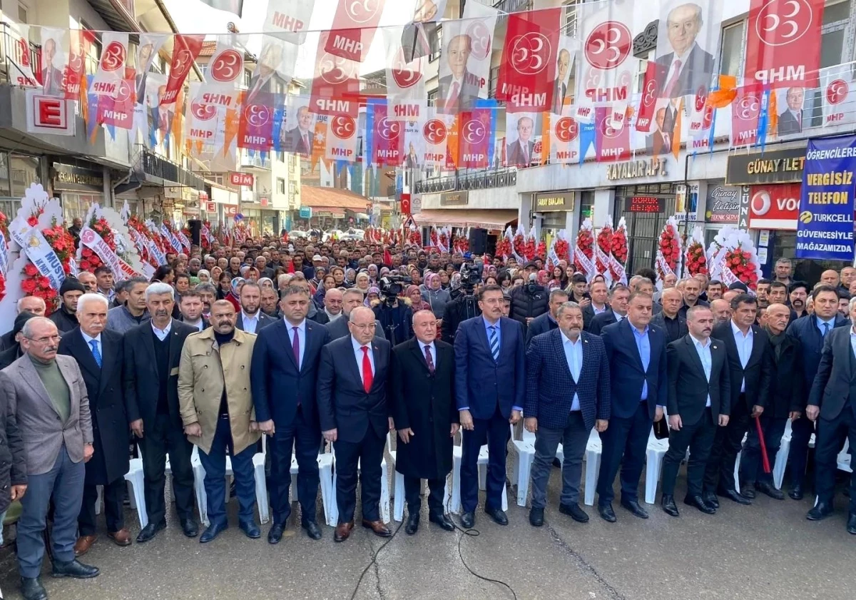 Konuşmaların ardından CHP’li Meclis Üyesi Süleyman Levent ile Bağımsız Belediye Başkan adayı olan Mustafa Levent’in MHP’ye geçmeleri nedeniyle rozetleri takıldı. Sonrasında seçim bürosunun açılışı yapılırken törene katılanlara Taşhan’da yemek ikram edildi. – MALATYA