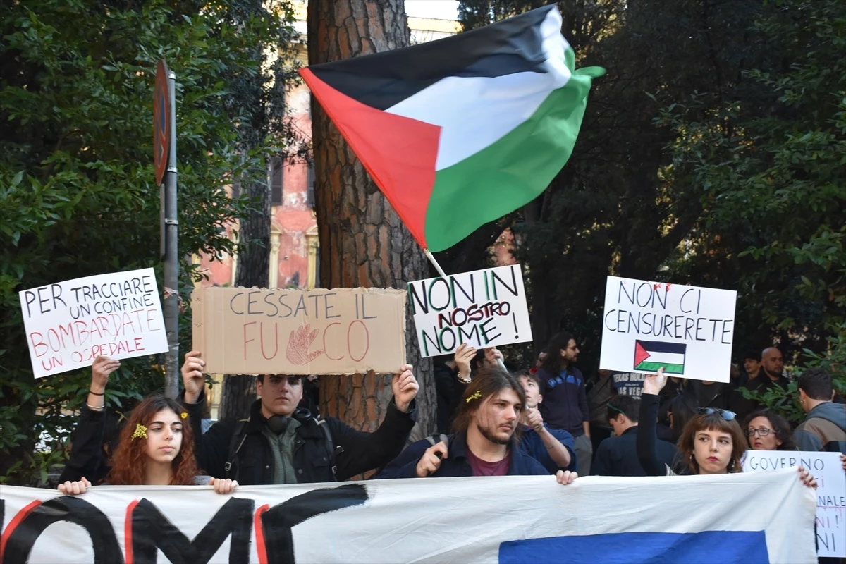 Başkent Roma’da Mazzini Caddesi’ndeki RAI Genel Merkezi önünde toplanan yaklaşık 4 bin kişi, ellerindeki Filistin bayrakları ve dövizlerle hem İsrail’in Gazze’ye saldırılarını hem de RAI yönetiminin tutumunu protesto etti.