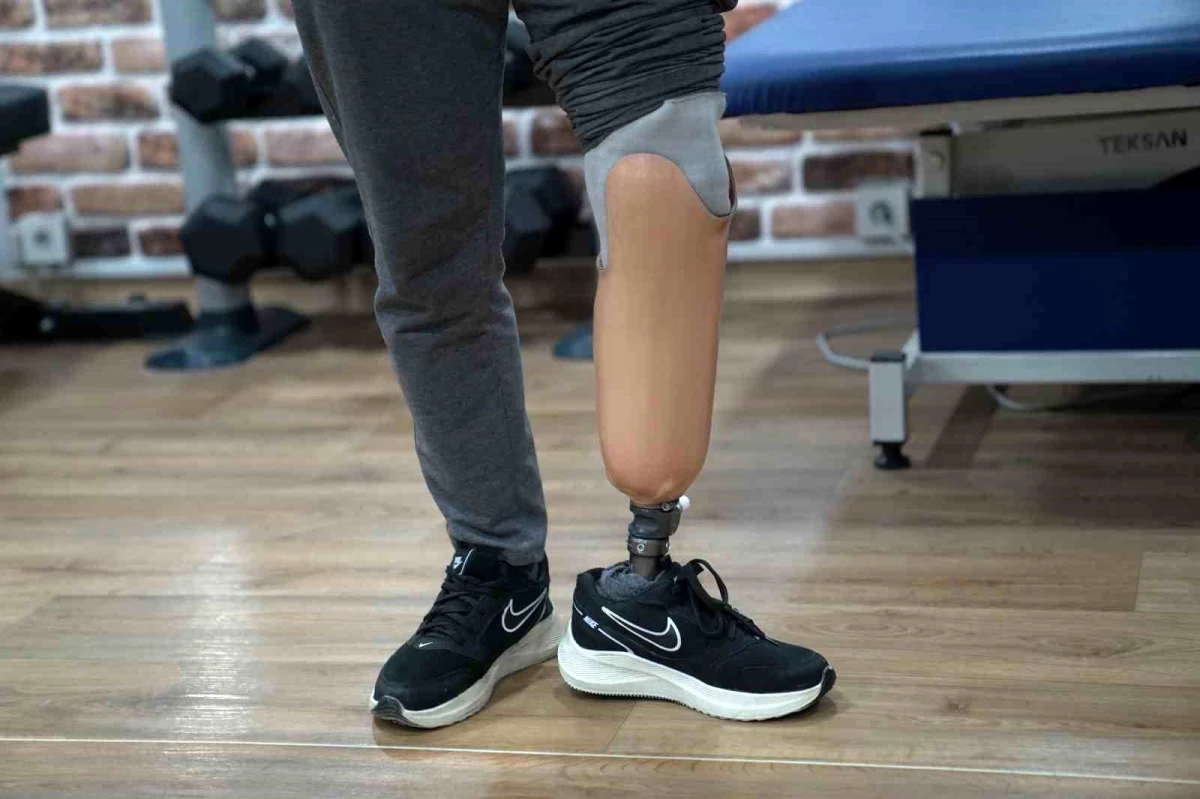 Kahramanmaraş merkezli asrın felaketinde enkaz altında bir bacağını kaybeden Murat Akkoç, yeni proteziyle artık yürüyebiliyor.