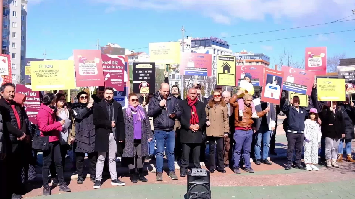 Eskişehir’de her hafta olduğu gibi bu pazar da Ulus Anıtı önünde bir araya gelen TOKİ mağdurları, hükümete seslendi. Topluluk adına açıklama yapan Serhan Alağaç, şunları söyledi: